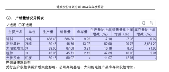 根据财报,公司高纯晶硅业务毛利率2024年仅为2%,相比2023年同比减少超过51%,太阳能电池组件业务虽销量增长46.93%,却因价格战导致“增产不增利”。民生证券研报表示,通威股份2024年多晶硅业务收入和利润承压,主要因为产业链供需失衡,全年多晶硅产品价格与成本倒挂,行业库存高企。